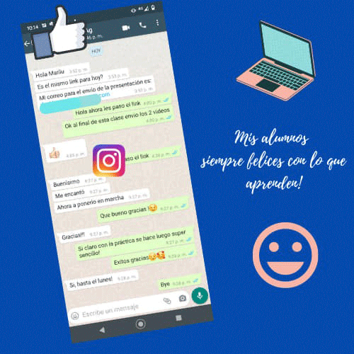 Te ofrecemos coaching permanente ilimitado después de cualquier curso para que puedas hacer consultas y tener apoyo permanente mientras que vas aplicando todo lo aprendido y aclarar todas tus dudas.
